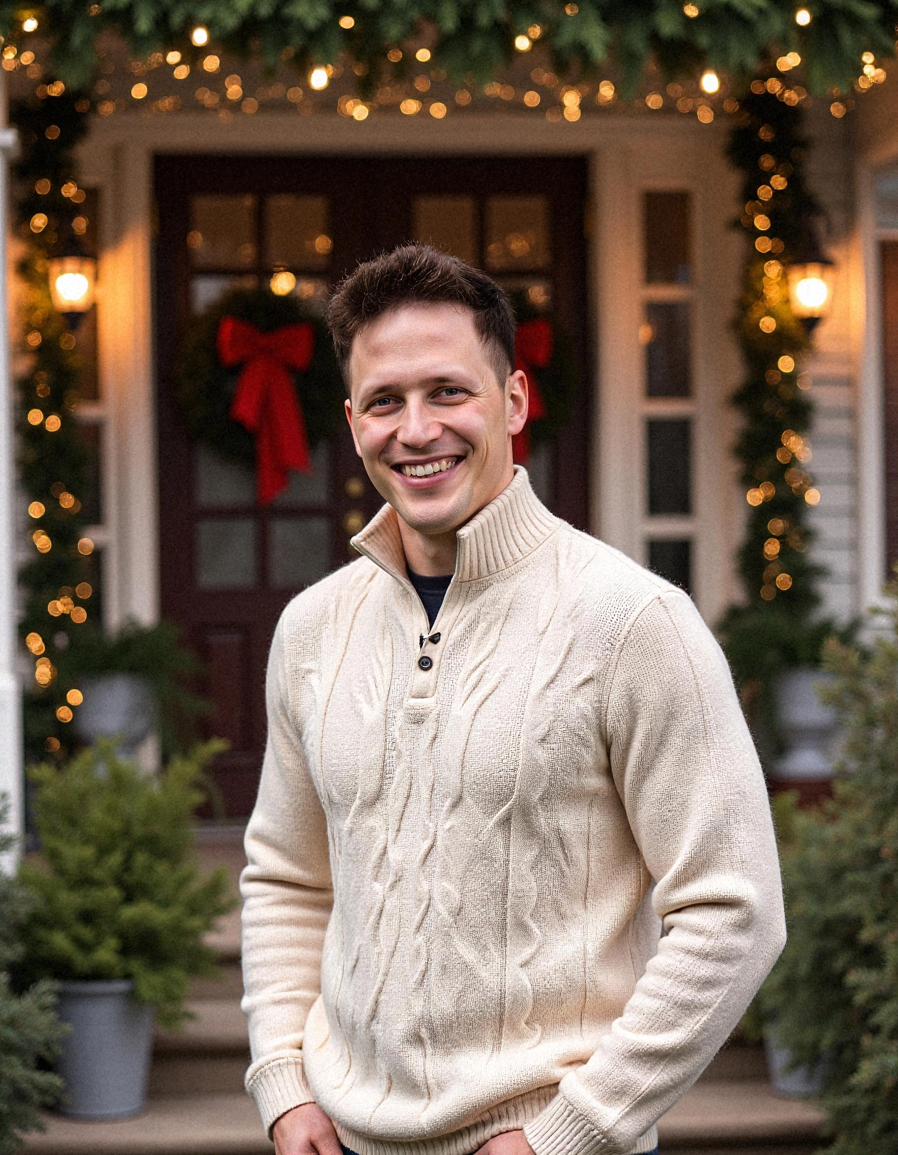 Create warm, festive AI headshots with cozy Christmas settings, glowing lights, and timeless holiday style.