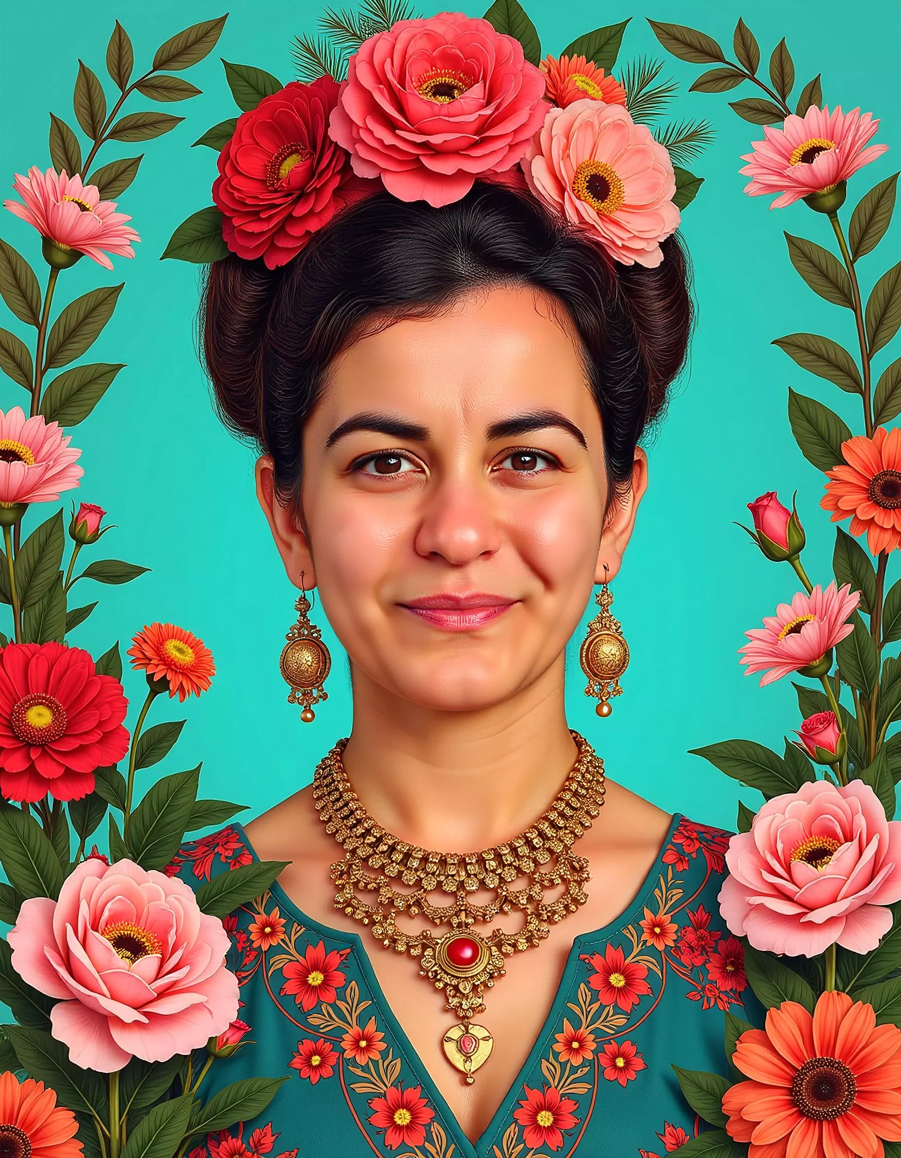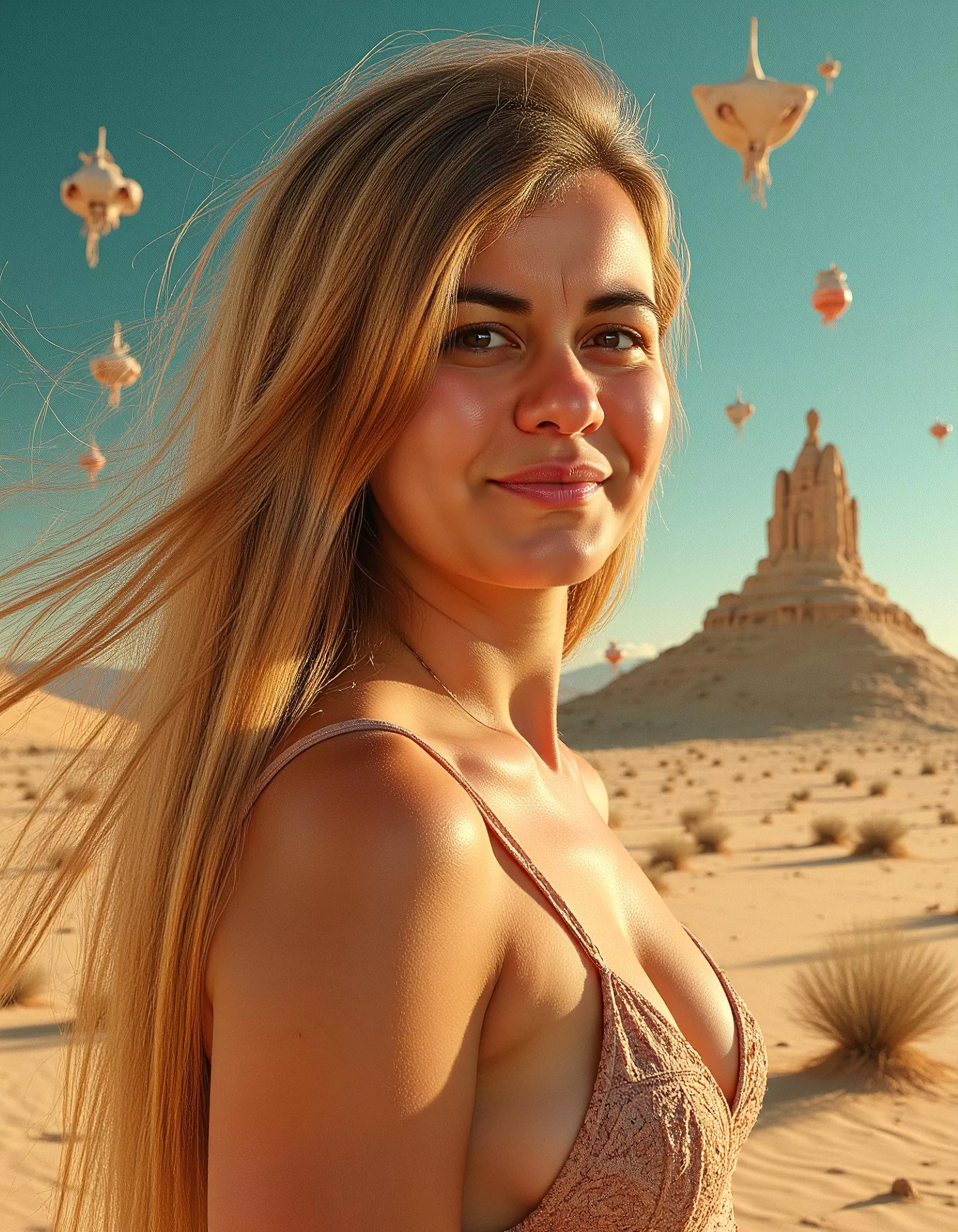 Our advanced AI technology enhances lighting, texture, depth, and color balance while preserving your natural facial features and expression. From golden desert backdrops and floating fantasy elements to stylized sketch art and vibrant botanical portraits, each image is crafted with high-resolution precision and artistic detail.