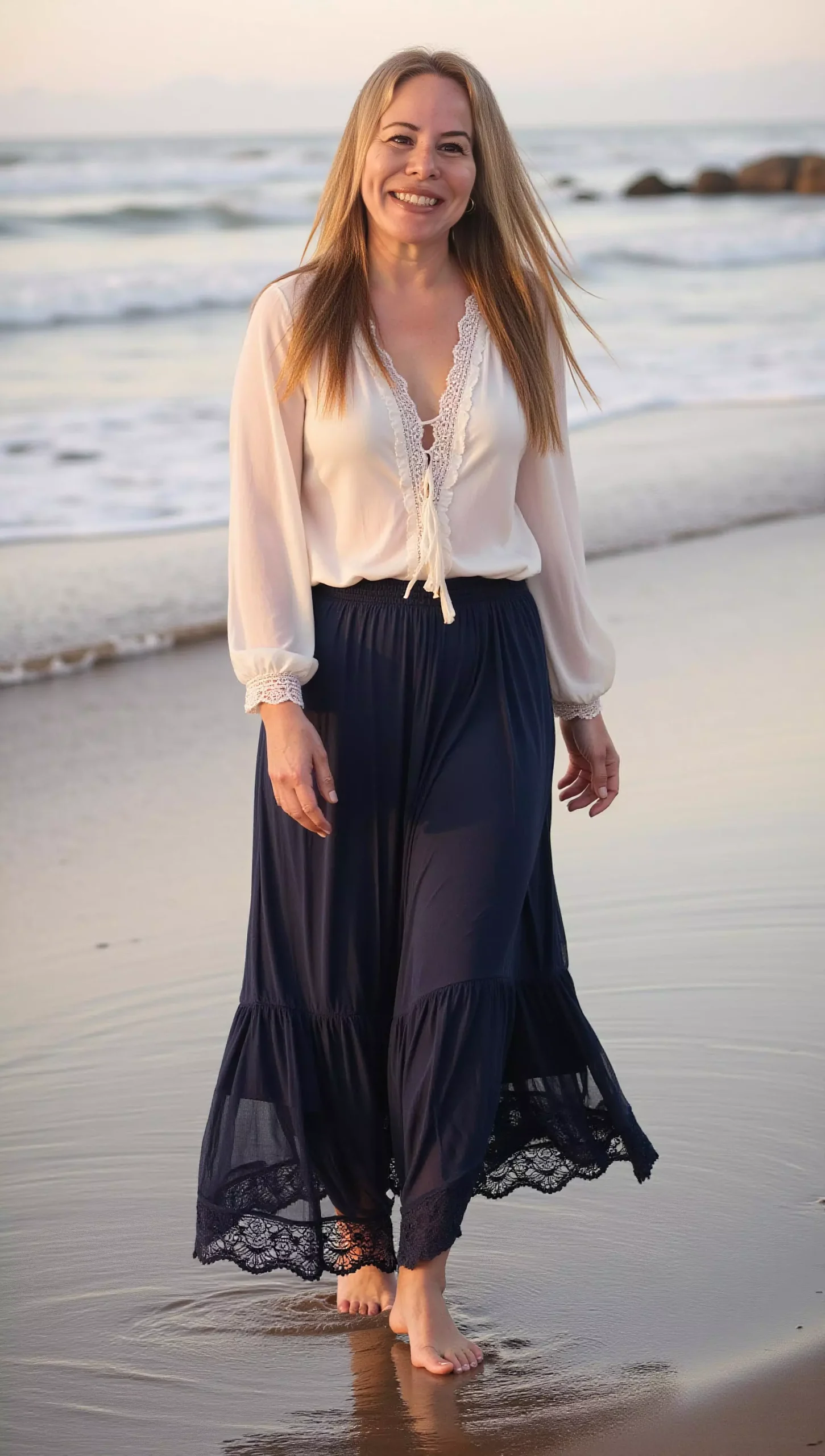 These AI generated images transform your uploaded photos into sun-kissed seaside scenes featuring flowing dresses, soft fabrics, golden hour lighting, and serene ocean backdrops.