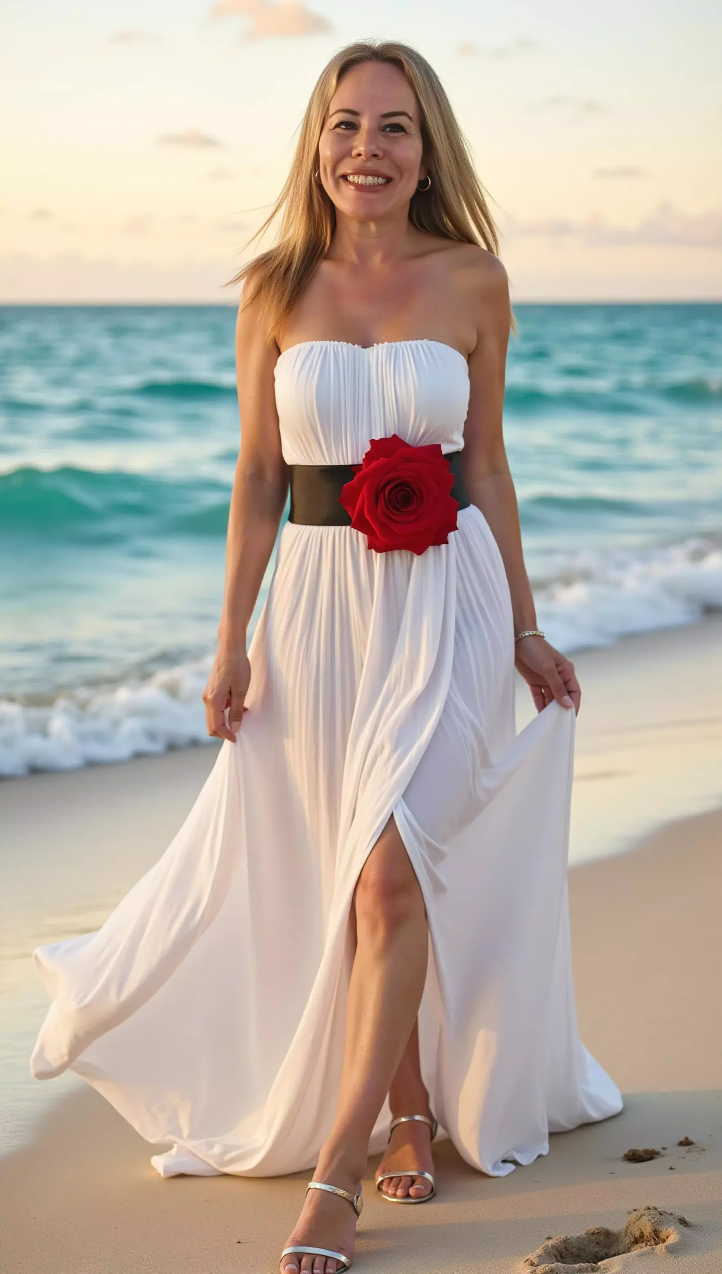 Elegant beach AI portraits with golden hour coastal vibes.