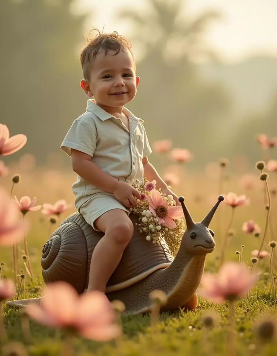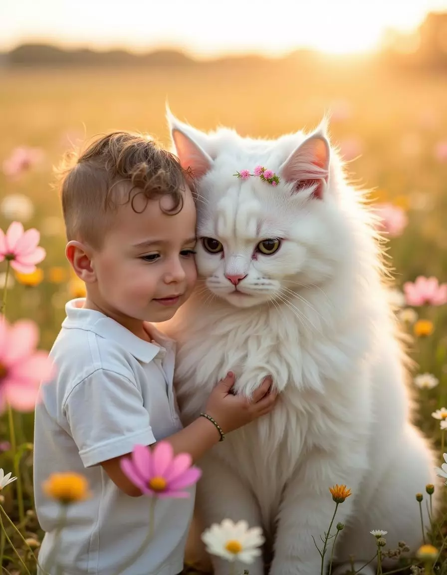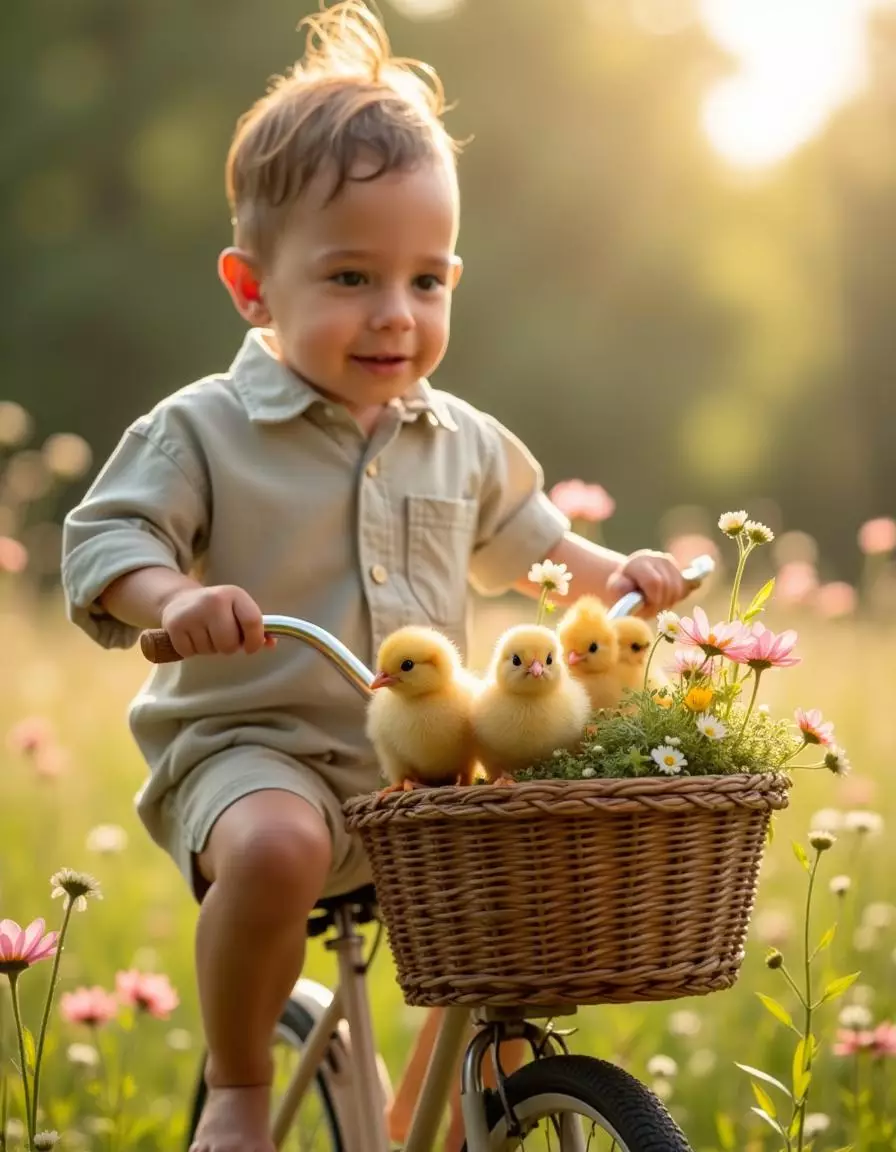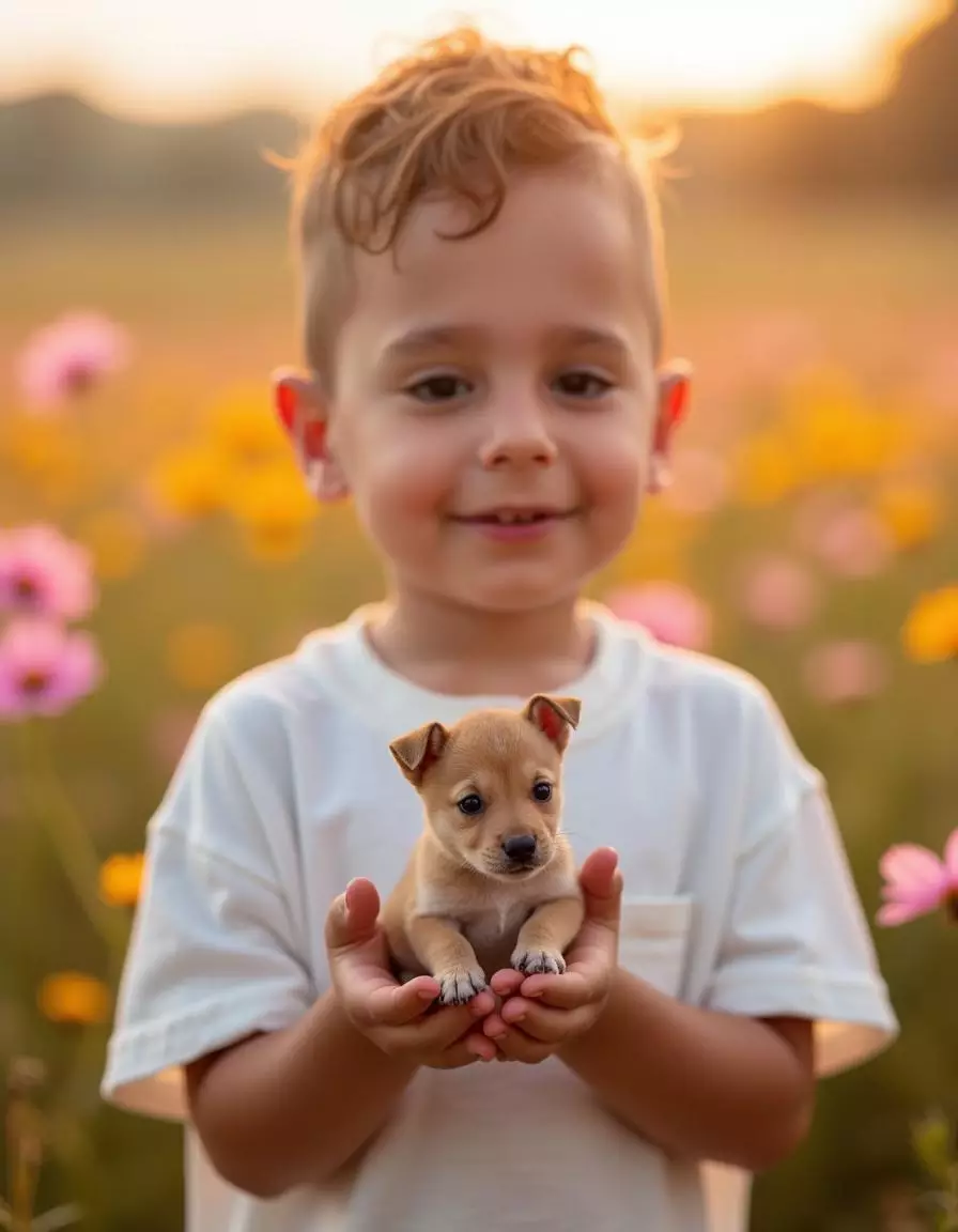 Our platform specializes in AI-generated pictures that transform your uploaded photos into heartwarming scenes set in sunlit flower fields with charming animal companions and soft natural light. By analyzing your child’s features, our advanced AI engine produces realistic, high-resolution portraits that maintain authentic expressions while enhancing warmth, color, and dreamy atmosphere.