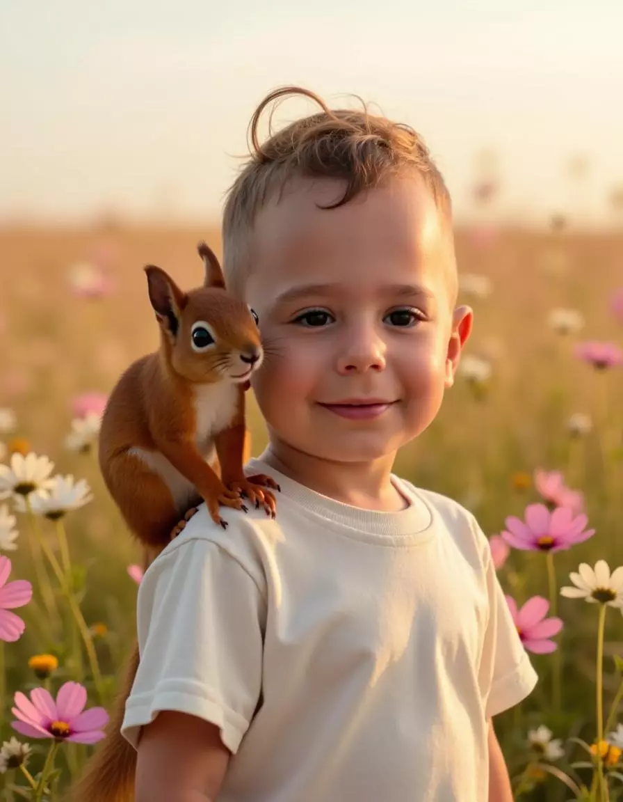 Turn your child’s photos into magical AI portraits with charming animal companions and golden outdoor scenes, delivered in high-resolution detail.